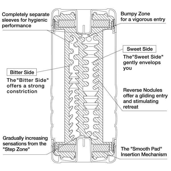 Designed in Japan using the latest technology, the U.S. Double Hole Cup features a double-canal structure providing different sensations from either side.