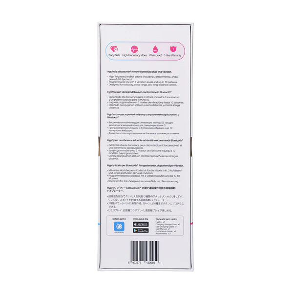 This dual-ended toy is exceptional for solo play and a welcome third party to any couples play too! Find new hot spots on your, or your partner’s body by exploring them with either end. You can control Hyphy from the toy itself or with the Lovense App, as this toy has Bluetooth® connectivity. Hyphy is also waterproof so don’t be afraid to get a little wet and wild I the bath or shower! Remember to clean your toy with a toy cleaner before and after every use too!